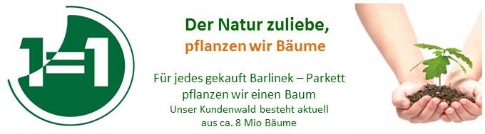 Durch sein seit vielen Jahren geführtes Umweltschutzprogramm „1 für 1”, das auf dem Pflanzen von Jungbäumen beruht, zur Wiederherstellung von Waldbeständen bei, die auf natürliche Art und Weise im Photosyntheseprozess das Kohlendioxid aufnehmen und Sauerstoff freisetzen. Dadurch hat Barlinek Einfluss auf die Milderung des globalen Klimawandels.